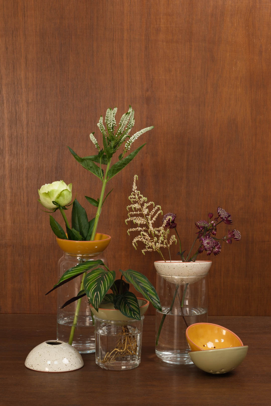 Remplissez un verre d’eau, posez la coupelle dessus, et glisse ta bouture dans le trou de la coupelle, en veillant à ce que le nœud soit juste au-dessus de l’eau (sans y plonger complètement). C’est là que les racines vont apparaître !