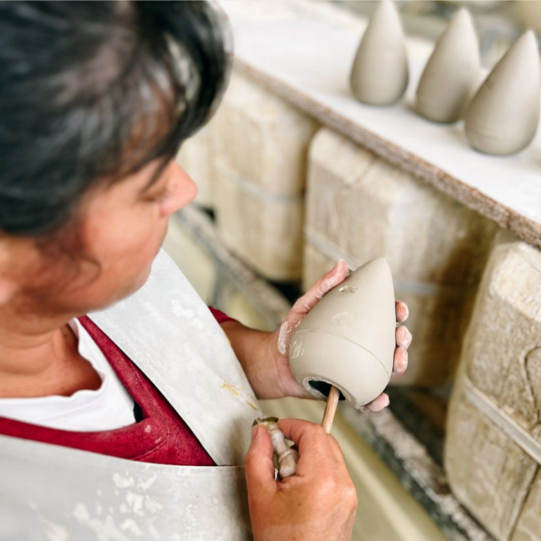 We collaborate with talented craftsmen across Europe, who possess exceptional know-how. Our Ollas are made by hand in Portugal, near Leiria, in the workshops of Ana and Vitor who have been working with clay for 4 generations. The corks come from protected cork oak forests and are processed in France.